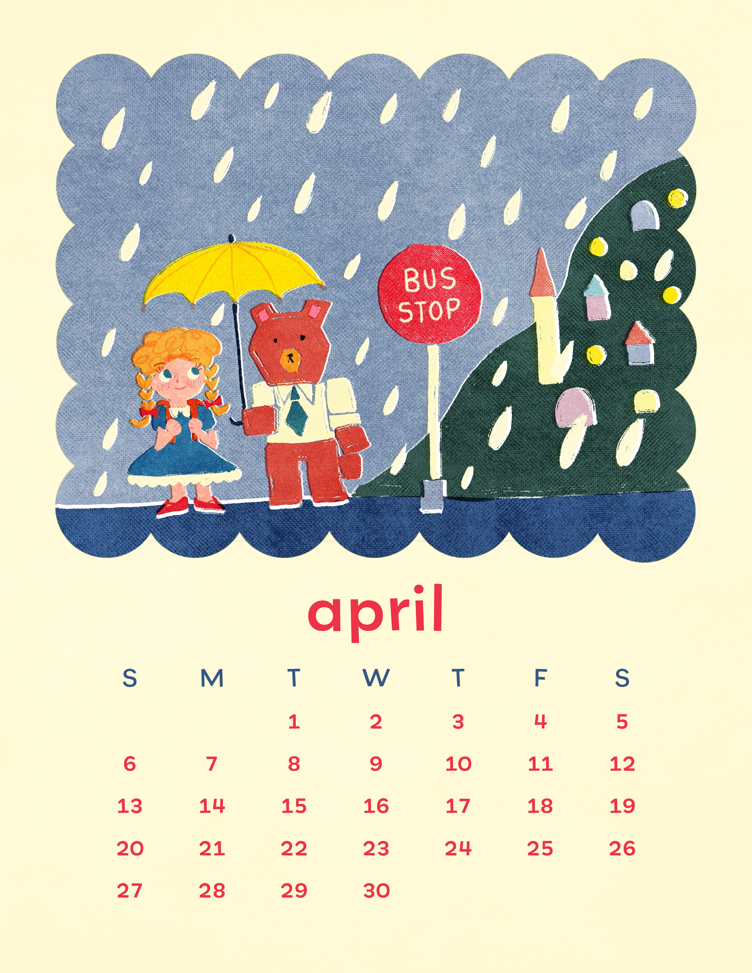 A retro risograph-style illustrated calendar based on Goldilocks and the Three Bears.